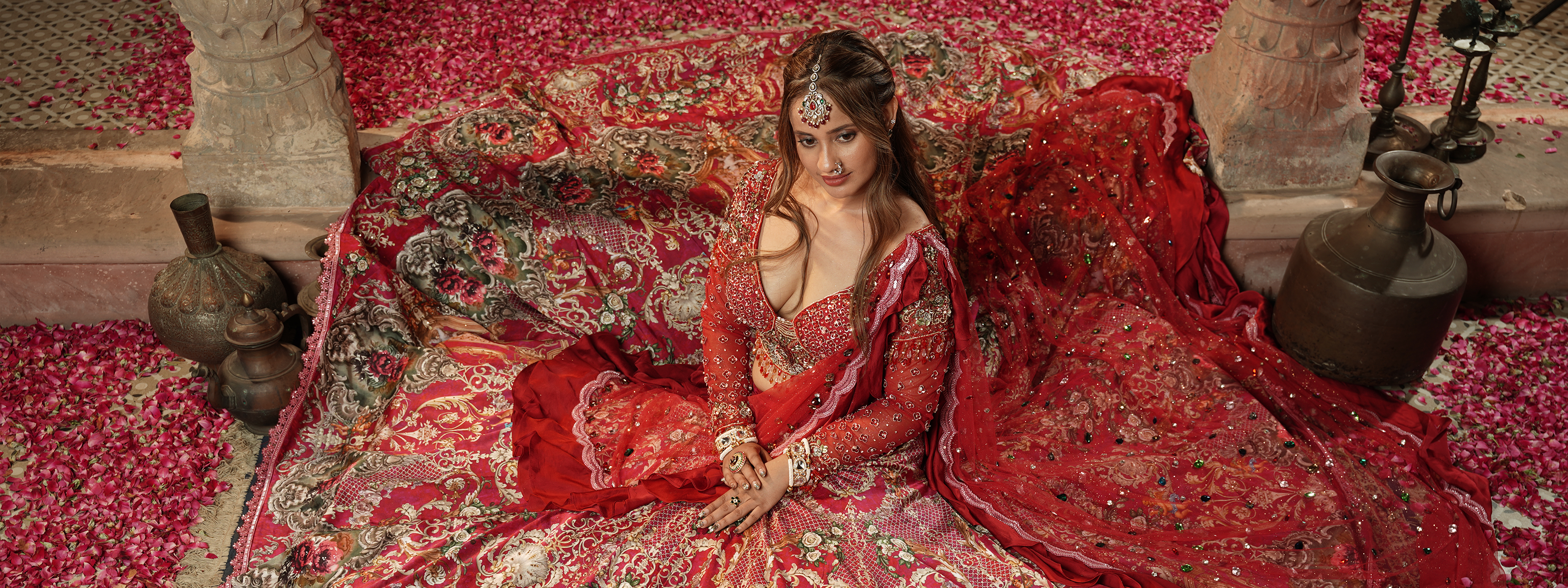 One Shoulder Elegant Soft Blush Floral Lehenga Set